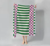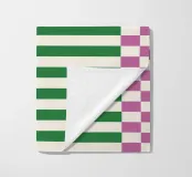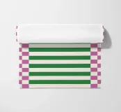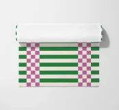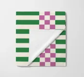 Purple and emerald green checks and lines on a bright white background give this design a festive, playful twist. Ideal for adding joyful energy and a touch of modern eclectic flair to your décor.