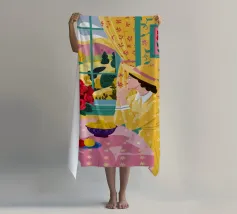 Terry velour with a mix of 55% microfiber and 45% cotton.
