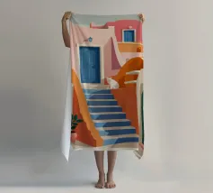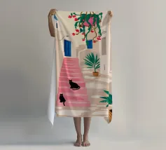 Terry velour with a mix of 55% microfiber and 45% cotton.