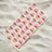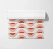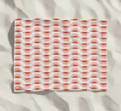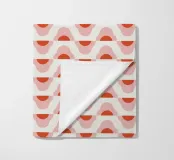 A repetitive wave-like pattern in shades of red and pink forms a geometric design. The pattern is evenly distributed across a light background, creating a visually harmonious effect.