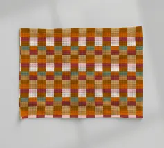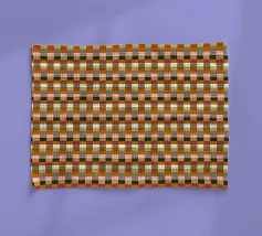A pattern of alternating colored squares creates a checkerboard effect with shades of beige, gray, and brown. The grid-like design is symmetrical and evenly spaced.