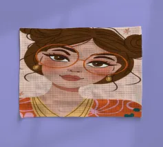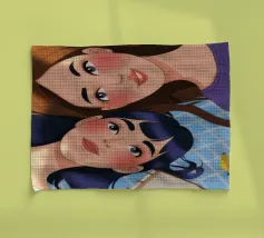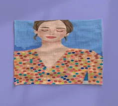 This painting portrays two individuals with intertwined hair and abstract patterns in the background. The use of bold colors and geometric shapes creates a sense of unity and fusion.