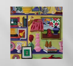 A maximalist interior displays a delightful profusion of framed pictures, diverse objects, colorful furniture, and vibrant patterns, capturing an atmosphere of artistic and joyful collection.