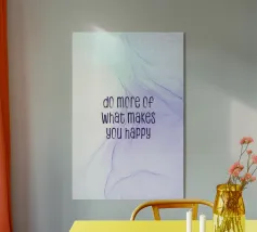 A few words and so much truth! A design that fits the motto of life. DO MORE OF WHAT MAKES YOU HAPPY. Do more of what makes you happy! Minimalist typography with a touch of colourful poured colour sweetens your day.