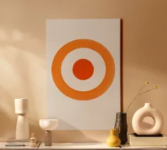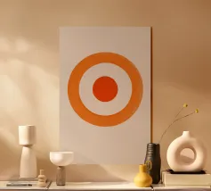 This minimalist poster shows a concentric circle in bright orange - a strong, calm and at the same time energetic motif. The simple shape and bold colour are modern, meditative and decorative at the same time. Ideal for minimalist interiors, creative workspaces or as a colour accent with graphic clarity.