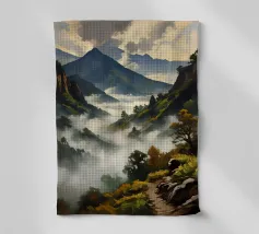 The path curves and twists, revealing a sense of natural rhythm as it follows the contours of the land. Its light color contrasts against the darker tones of surrounding trees or terrain, drawing the eye like a ribbon laid across the earth. Seen from above, the winding path tells a quiet story of travel, exploration, and connection—leading the viewer’s gaze into the distance, toward places unknown.