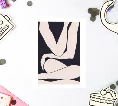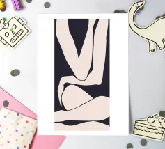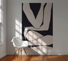 This minimalist design in black and white shows an abstract depiction of a human body, reduced to simple, flowing lines. The clear design language and high-contrast style make this motif a timeless addition to modern living spaces. Perfect for art lovers looking for subtle, stylish accents. Whether as a mural, cushion or mug, this design adds a special touch to any room and exudes elegance and calm.