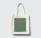 The image features a complex, repeating geometric pattern with interlocking shapes. A blend of green, black, and white dominates the composition, creating a visually dynamic effect.