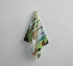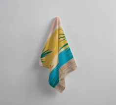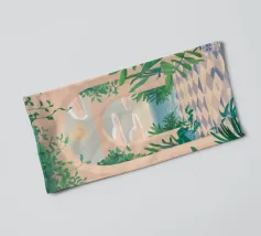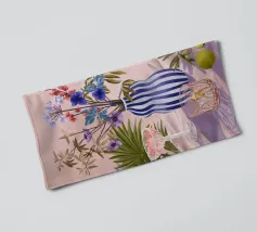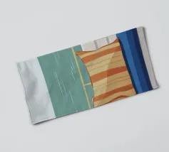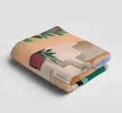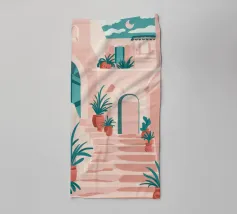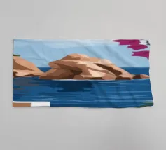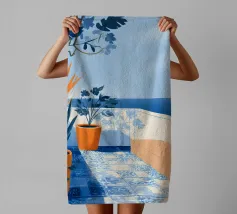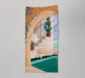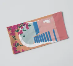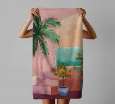 A tropical illustration in a Mediterranean setting. The bench invites you to dream away in this summery environment.