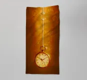 a clock hanging on a nearly broken string