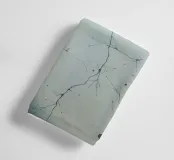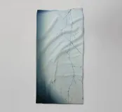 Intricate branching patterns fill this abstract artwork, set against a gradient blue to white background. The delicate lines create a serene and minimalist effect, inviting contemplation.
