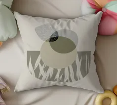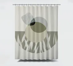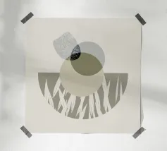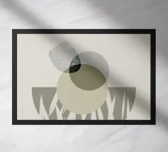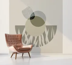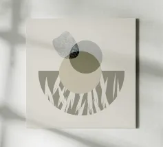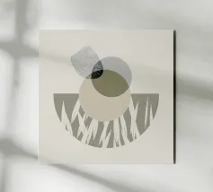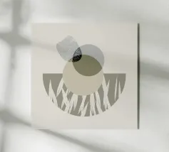 Modern, contemporary and minimalist art with geometric round shapes and textures in soft pastel shades of sage green, beige and grey. Simple and abstract motifs characterize this artwork, which fits well in bohemian, industrial, basic and modern living styles and interiors.