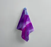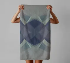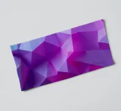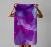 Vibrant abstract composition showcases a blend of purple and blue hues, forming sharp geometric shapes and smooth transitions that create depth and movement.
