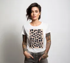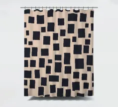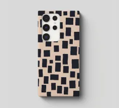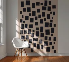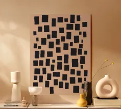 This abstract design with geometric black squares on a beige background brings modern elegance to your home. The harmonious interplay of black and beige gives the pattern a warm, timeless aesthetic, ideal for those who appreciate a minimalist yet striking style. Perfect for wall art, cushions, mugs, mobile phone covers and more to add a stylish accent to living spaces. A real eye-catcher for lovers of geometric patterns and contemporary design.