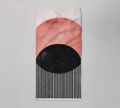 This modern work of art combines clear geometric elements with harmonious earthy tones. A central circle in warm orange and black is complemented by fine, curved lines that create dynamism and depth. The design is characterised by minimalist elegance and is perfect for wall murals, cushions or accessories. Ideal for adding a stylish and timeless atmosphere to living spaces.