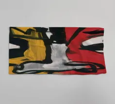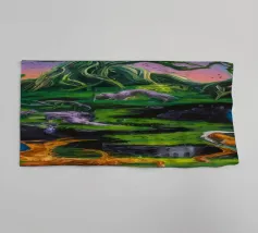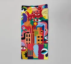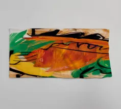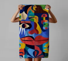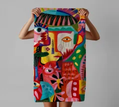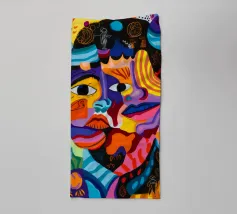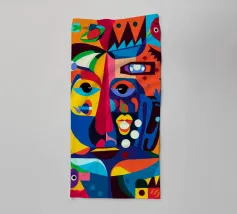 A burst of vivid colors and abstract forms fills the canvas, chaotic yet beautifully harmonious in its energetic composition.