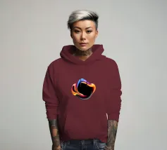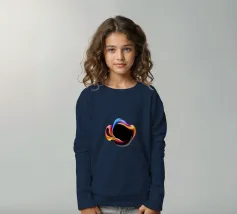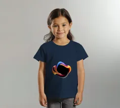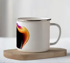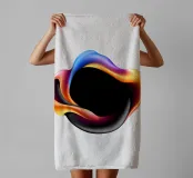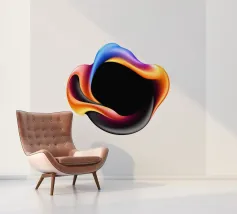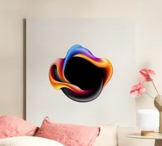 This artwork features swirling forms in vibrant colors of orange, blue, and black, creating a captivating visual effect that intrigues the viewer.
