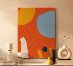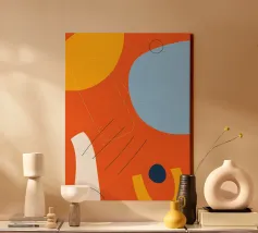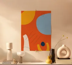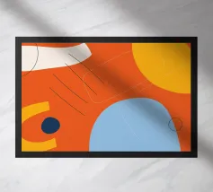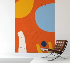 This dynamic design combines bright colours such as orange, blue and yellow with abstract shapes and fine lines. The mixture of bold colours and minimalist elements gives this motif a special energy and vibrancy. Perfect for wall murals, mugs, mobile phone covers or cushions - a real eye-catcher in any modern home. Give your room a fresh and creative atmosphere with this unique work of art.