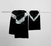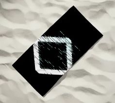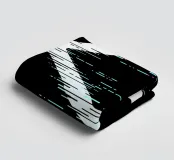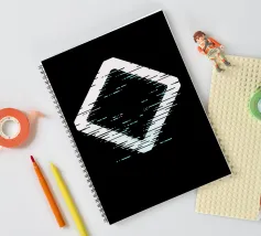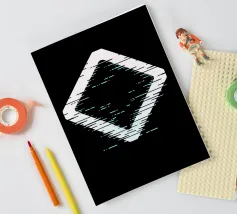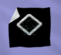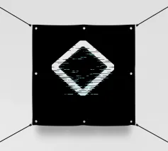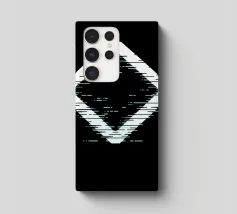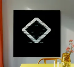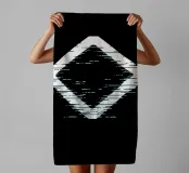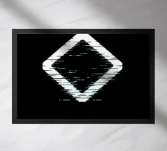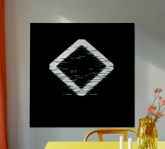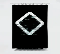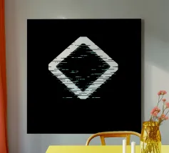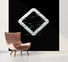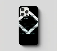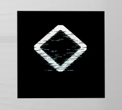 A striking design showcases a distorted diamond shape made of white lines, set against a solid black background, capturing the essence of digital art.