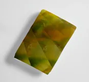 A picture of an abstract, dynamic pattern in the colours yellow, green and white.