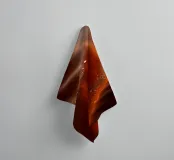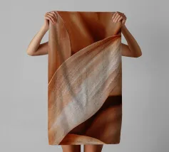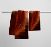 This captivating design showcases textured fabric flowing gracefully, accentuated by tiny droplets of water catching light. The warm orange hues create a dynamic and soothing background.