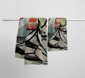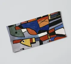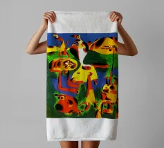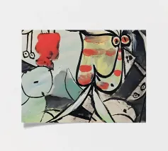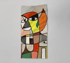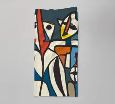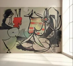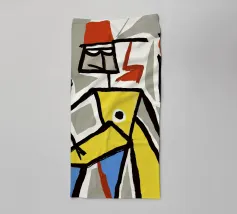 This vibrant and expressive abstract art print features several whimsical figures, rendered with bold black outlines and a playful palette of reds, yellows, and light blues against a muted background. The forms are distorted and fragmented, reminiscent of Cubist and Surrealist influences, creating a sense of dynamic movement and imaginative storytelling. This high-quality digital poster (7000x5000 pixels, 300 dpi) beautifully captures the spontaneous energy and artistic freedom of the original, making it a unique and captivating addition to any modern interior.