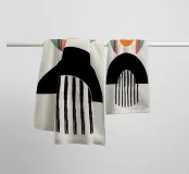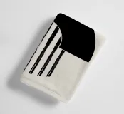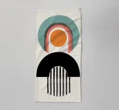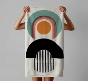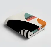 This modern work of art plays with geometric shapes and vibrant colours. A strong orange tone meets a soft blue and a dominant black, giving the design a striking but harmonious effect. The curved arches and clean lines create a contemporary, minimalist flair. Ideal for wall murals, cushions, mobile phone covers or mugs, this design fits perfectly in modern living spaces, offices or creative studios. It is a real eye-catcher for anyone who loves stylish and abstract art.