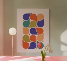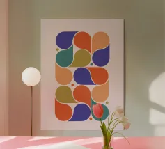 Add a touch of retro charm to your space with this abstract geometric shapes art print. The fluid forms and vibrant color palette create a visually appealing and modern design. This print is perfect for lovers of mid-century modern aesthetics and contemporary art. By showmemars