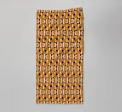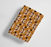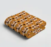 Geometric shapes create a repeating pattern in shades of brown, black, and beige. The design forms an intricate, interlocking mosaic that creates a sense of movement.
