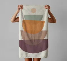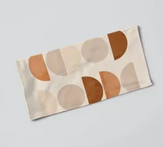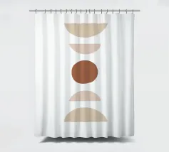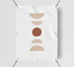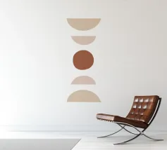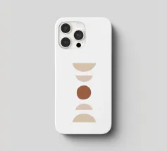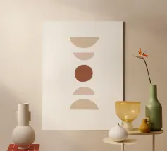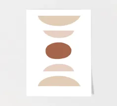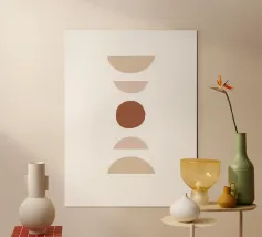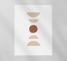 This minimalist design with geometric shapes in warm earthy colours combines semi-circles and circles to create a harmonious overall picture. The clean lines and modern colour choices create a calm and stylish atmosphere, perfect for art lovers who appreciate Scandinavian or boho style. Ideal for wall murals, mugs, cushions or mobile phone covers, this motif adds an elegant and contemporary touch to any room