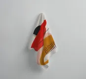 A minimalist abstract composition of balanced geometric and organic shapes in terracotta, black, and beige, with textured details. The style is modern and sophisticated.