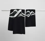The artwork features a series of flowing wave patterns, creating a sense of rhythm and fluid movement against a contrasting dark backdrop.