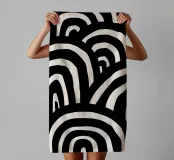 This fascinating design with curved, black lines on a cream-coloured background is reminiscent of abstract wave shapes. The dynamic composition adds energy and modern elegance to any room. Perfect for wall art, mugs, mobile phone cases, cushions and more, this pattern brings a unique, artistic touch to any living space. For lovers of minimalist and contemporary art, this design is a stylish eye-catcher and an ideal gift for creative minds.