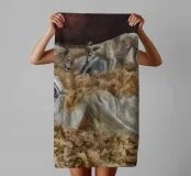 Terry velour with a mix of 60% microfiber and 40% cotton.