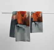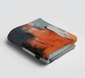 Fiery orange ignites through soft grays and blues like fading embers in urban fog.