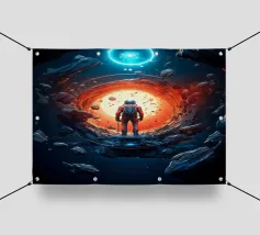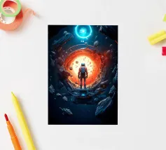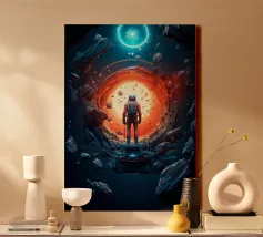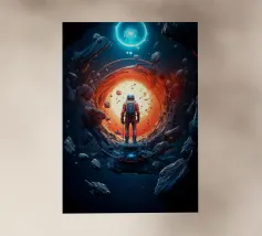 Explore the cosmic symphony, an intrepid astronaut steps into the galactic portal, venturing beyond stars into the unknown. Space adventure awaits!