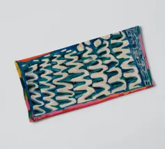 Blocks of different patterns and warm autumnal colors�yellows, oranges, reds, with contrasting blues and greens�create a richly textured patchwork design.