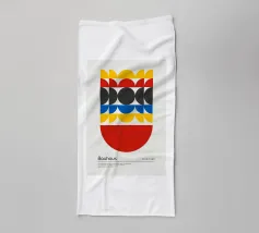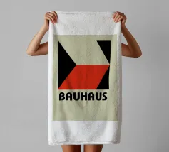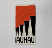 Bold Bauhaus abstract geometric art print featuring triangular shapes resembling architecture or a cityscape, set against a striking red and cream background. Minimalist design with strong contrast embodies the iconic Bauhaus aesthetic. High-quality digital art file (7000x5000px, 300 dpi) perfect for stunning prints. Ideal modern wall art.