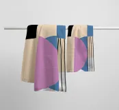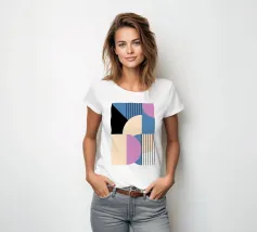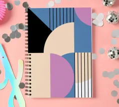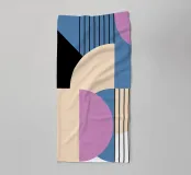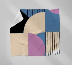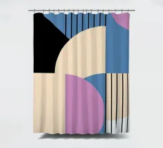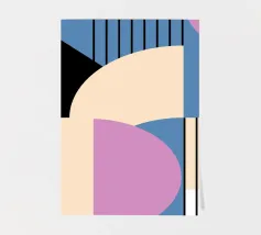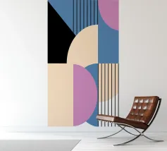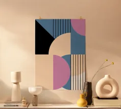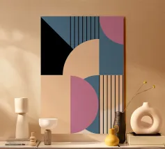 Immerse yourself in the captivating world of modern abstract art with this stunning print, echoing the timeless elegance of the Bauhaus movement. This piece features a dynamic interplay of geometric shapes – arcs, squares, and triangles – in a sophisticated palette of soft lavender, warm peach, cool blue, and stark black. Bold black vertical lines add graphic contrast and structure, creating a sense of balanced composition and contemporary flair. Perfect for adding a minimalist yet impactful touch to any space, this digital art print boasts an impressive 7000x5000 pixel resolution at 300 dpi,