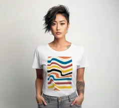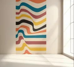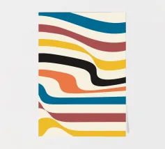 Embrace the vibrant aesthetic of retro design influenced by the Bauhaus movement with this striking graphic art print featuring abstract wavy lines. Composed of bold wavy horizontal lines in a rich color palette (teal, yellow, orange, black, red, brown, pink), set against a pale background, this artwork embodies principles of abstract form, color, and dynamic pattern. This high-quality digital art file boasts a stunning 7000x5000 pixel resolution at 300 dpi, ensuring exceptional detail and clarity for your poster print. A perfect piece for design enthusiasts and anyone appreciating colorful ab