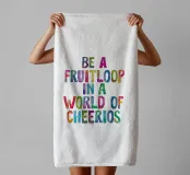 Add a splash of whimsy to your space with this charming typography art print. The playful phrase "Be a Fruitloop In a World of Cheerios" comes to life in vibrant rainbow watercolour hand-painted lettering, set against a crisp white background. This eye-catching piece serves as a delightful reminder to embrace your uniqueness and stand out from the crowd. Perfect for brightening up any room, from a child's bedroom to a home office, this colourful artwork is sure to spark joy and conversation. Let this cheerful print inspire you to celebrate your individuality every day.