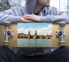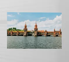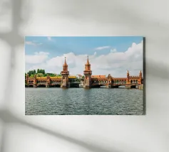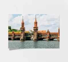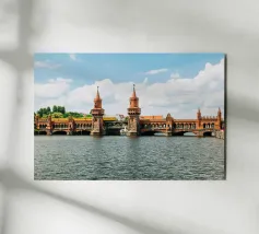 I photographed the Oberbaum Bridge in Berlin, one of the city's most famous landmarks, at the exact moment when a yellow S-Bahn train crossed the bridge. The striking architecture of the bridge, the water of the Spree and the blue sky make the picture a typical Berlin motif that simply never gets boring. And it also looks wonderful as a mural at home!