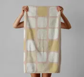 This artwork features a harmonious interplay of geometric shapes and soft colour fields in mustard yellow, pink and beige. Inspired by mid-century and boho styles, the result is a minimalist pattern with clear lines and fine symmetry. The calm colour palette lends the motif a warm, Scandinavian elegance.