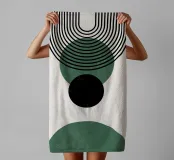 This minimalist design combines clean lines with geometric shapes in black and green tones on a light-coloured background. The harmonious arrangement of circles and arcs gives the motif a timeless and modern aesthetic. Perfect for wall murals, mugs, cushions and mobile phone covers, this design brings an elegant and calm atmosphere to any room. Ideal for lovers of boho style and Scandinavian designs - a versatile choice for decoration or as a stylish gift.