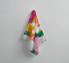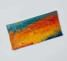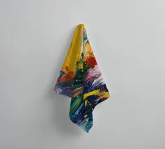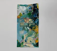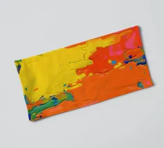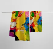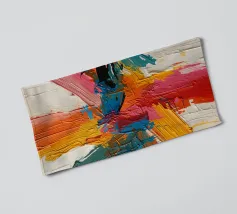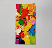 Vivid colors blend together in dynamic shapes, creating a joyful and energetic composition. The assortment of hues offers a striking visual experience filled with movement.