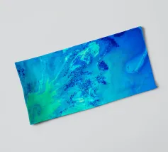 A vibrant turquoise surface with a textured, abstract appearance. The subtle variations in color and pattern create a striking yet calming visual experience, suitable for contemporary design.