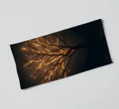 A striking silhouette of a tree with branches aglow, creating an enchanting, abstract design suitable wallpaper. The nighttime backdrop enhances the luminous effect.