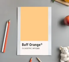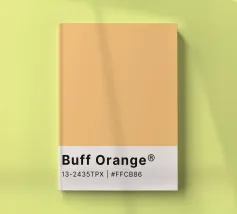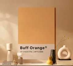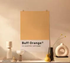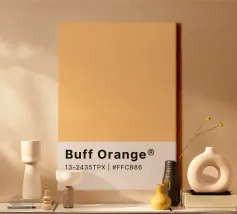 Elevate your space with this refined digital poster showcasing the "Buff Orange" Pantone color. The top section features a solid block of this warm, muted orange hue, while the bottom clearly displays "Buff Orange®" alongside its Pantone code 13-2435TPX and hexadecimal value #FFCB86. This print is ideal for adding a sophisticated touch of color to any modern interior, appealing to designers and color connoisseurs. This high-quality digital poster is provided at an impressive 7000x5000 pixels resolution and 300 dpi, ensuring exceptional clarity and accurate color representation for a premium ae
