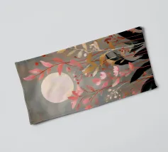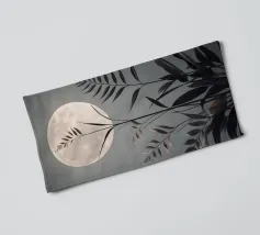 This captivating print features a full moon, bathed in a soft, golden glow, against a deep black backdrop. Two elegant, stylized flowers, one with dark, almost iridescent petals and the other with delicate, golden leaves, stand tall beneath the lunar orb. The interplay of light and dark, combined with the intricate details of the floral elements, creates a truly mesmerizing piece that will add a touch of celestial beauty to any space.