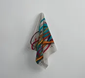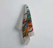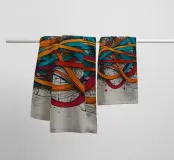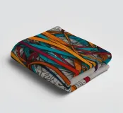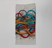 This design showcases an intricate arrangement of flowing lines and vibrant colors, creating a sense of motion and energy. The background is neutral, enhancing the visual impact.